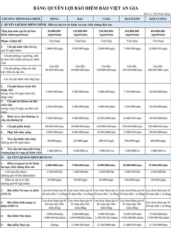 Bảo hiểm sức khỏe toàn diện An Gia của Bảo Việt là lựa chọn hàng đầu cho gia đình muốn được bảo vệ một cách toàn diện trước các rủi ro về sức khỏe. Với phương châm “Chăm sóc sức khỏe của bạn là ưu tiên của chúng tôi”, gói An Gia mang đến hệ thống quyền lợi vượt trội, dịch vụ bảo lãnh rộng khắp và nhiều ưu đãi hấp dẫn cho khách hàng.